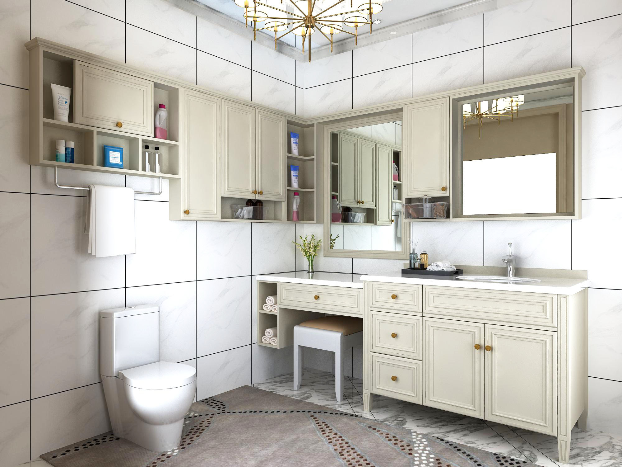 提拉柜门、转角柜、毛巾杆功能设计,实用性更强: